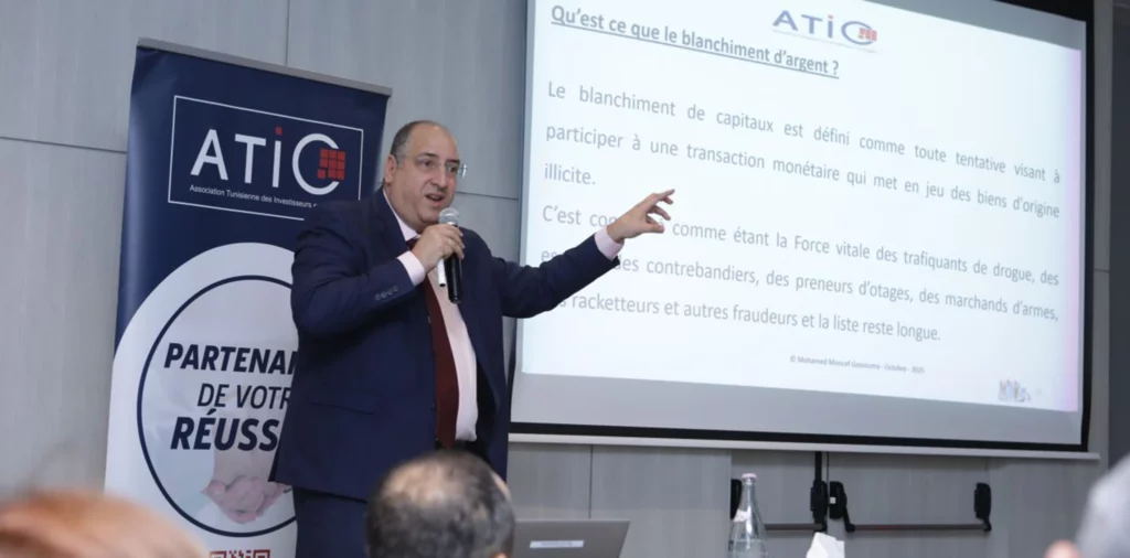 Le Centre de Formation des Investisseurs en Capital (CFIC) a organisé le 29 octobre 2025 un séminaire de formation technique sur la “Lutte contre le blanchiment de capitaux et le financement du terrorisme” (LAB/FT). Cette session intensive, spécialement conçue pour les sociétés de gestion de fonds et les SICAR, a été animée avec expertise par M. Mohamed Moncef Gassouma, expert en compliance et Directeur Central de la Conformité de l’ATB.